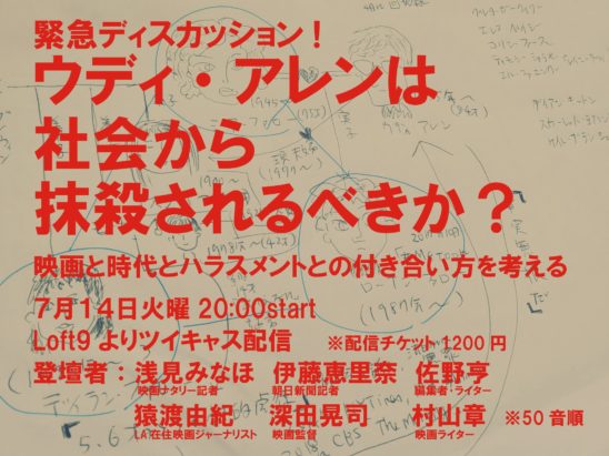 #MeToo運動 などの時代の流れとも結びつき、非常に複雑な案件となっていますが、日本ではまだ周知や理解が追いついていない印象です。そこで、アレンの一連の騒動を入り口に、今、映画を届ける上で何が求められているのかを考えるトークイベントを開催します。