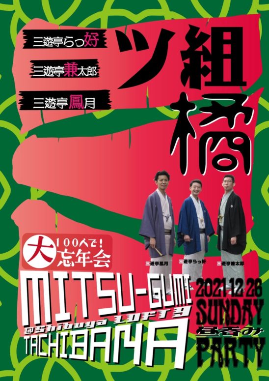 定紋 三組橘のもとに集まった若手三人。個性ぶつかる熱い落語とトークをお約束致します。