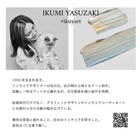 ペイントアーティストIkumi Yasuzakiによる、ミニアート・雑貨を販売します。絵の具を微妙に混合させた唯一無二の「色」の世界を見に、ぜひご来店ください。商品を1つ以上お買い上げのお客様全員に、オリジナルステッカーをプレゼントいたします。
