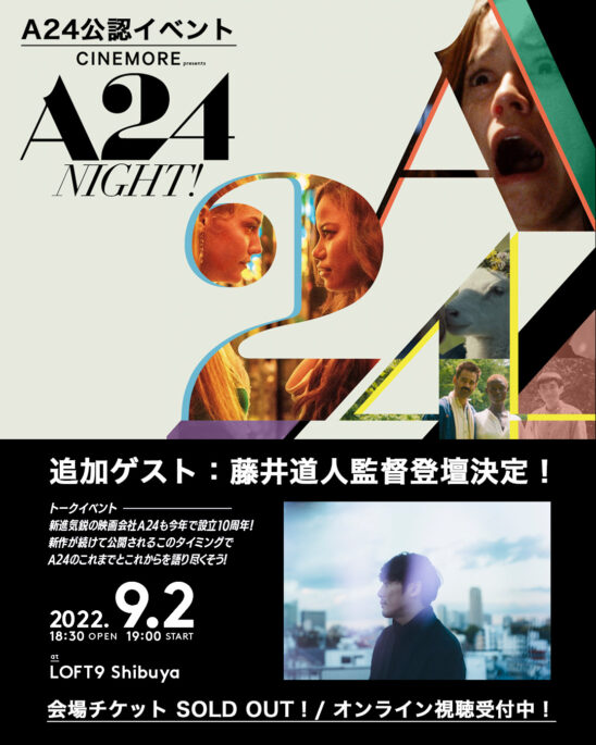 映画サイト”CINEMORE”がおくるトークイベント「A24 night!」。今年はA24設立10周年!日本でも『X エックス』『Zola ゾラ』『LAMB/ラム』『アフター・ヤン』『MEN』などA24作品が続けて公開!このタイミングで再びA24について語り合おう!2012年に設立された新進気鋭の映画会社「A24」。あえてハリウッドのあるロサンゼルスではなくニューヨークに本社を構え、いわゆるメジャー大作とは相反する、良質なインデペンデント/アート系映画を多数製作、配給。『ムーンライト』(16)がオスカーを獲得したのをはじめ、もはやここ数年のアカデミー賞では欠かせない存在となっています。