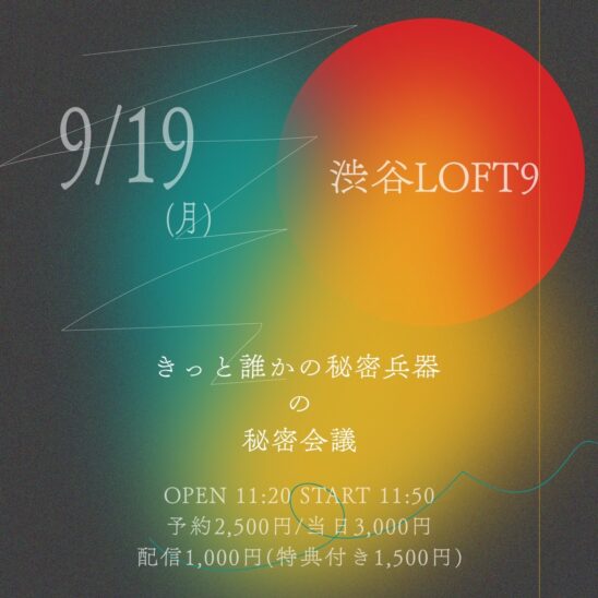 - 会場チケット代2500円当日3000円(※飲食代別要1オーダー¥500以上)
