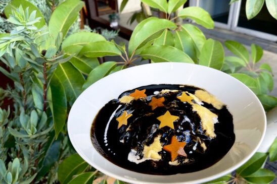 夜道雪さんのお名前から“夜空”をイメージした真っ黒なソースと星々