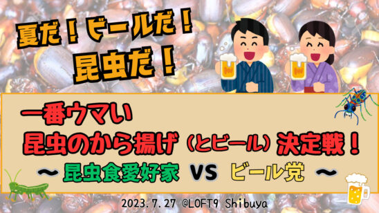 「ここらで一発、ビールに一番合う昆虫のから揚げを決めちゃおうじゃないの」という、夏らしい?イベントを開催しちゃいます!