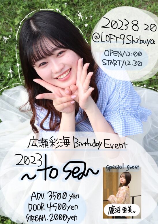 昨年に引き続き、歌って話して歌って、24歳の幕開けを広瀬彩海と過ごしましょう!!!