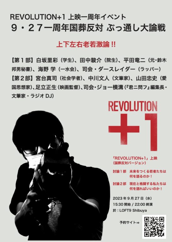 15:30〜上映「REVOLUTION+1」(国葬反対バージョン)(45分)