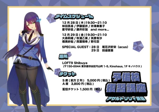 S席(前方2列)¥5,000(※飲食代別/要1ドリンク)