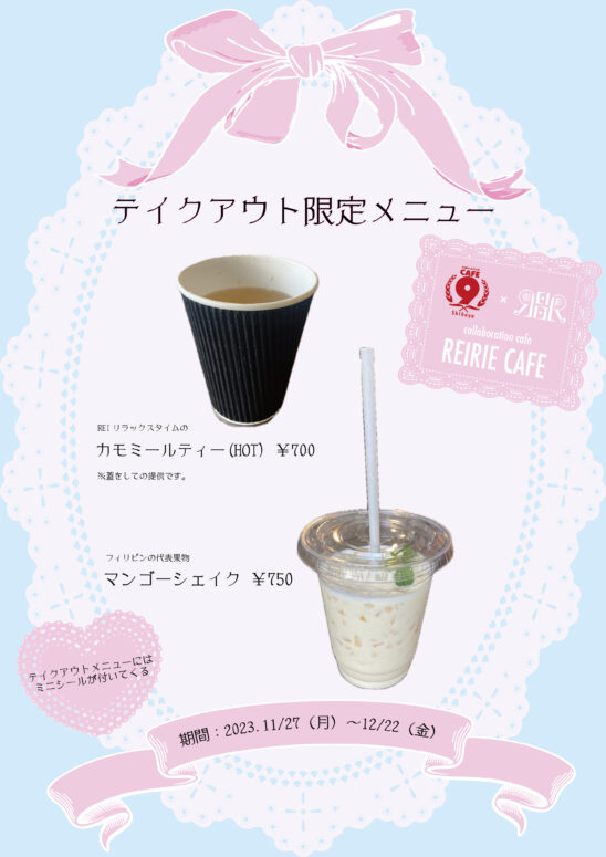平日17:00以降と土日祝日(終日)はテイクアウト限定メニュー2種のみのご提供となります。
