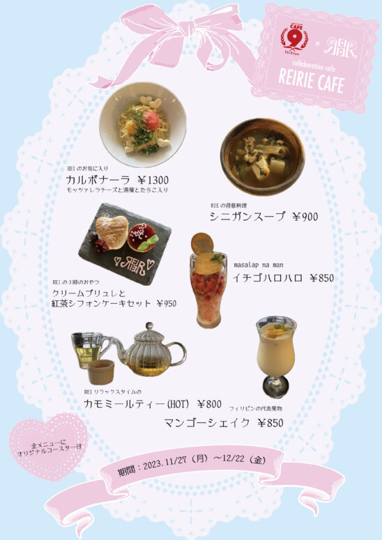 店内ではライブ写真の展示、グッズ販売、BGMはREIRIE楽曲と盛りだくさん♫