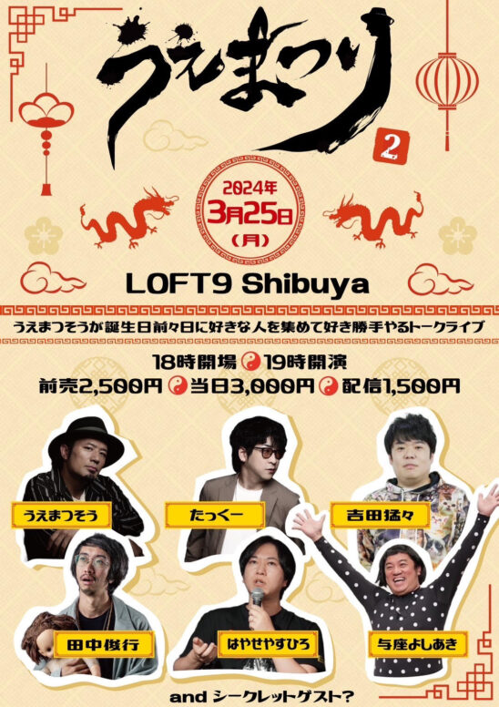 誕生日前々日のうえまつそうが大好きな人たちを集めて笑いあり恐怖ありのエンタメトークライブを開催。今回で2回目。