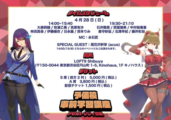 S席(前方2列)¥5,000(※飲食代別/要1ドリンク)