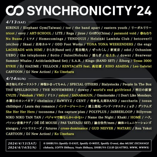 会場:Spotify O-EAST / Spotify O-WEST / Spotify O-nest