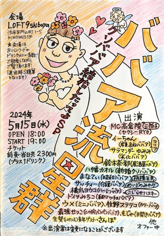 【出演】マリア、鈴木奈都、板橋区民、ウメ、こじらせハスキー、牧野ステテコ、せつこ、もじゃ、八幡カオル、三拍子高倉、さんぽ