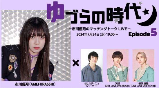 AMEFURASSHI随一のおしゃべり番長・市川優月が、トークのマッチメーカーとなり自ら指名したゲストとクロストークを繰り広げるトークライブ「-市川優月のマッチングトークLIVE- ゆづらの時代」を開催します。