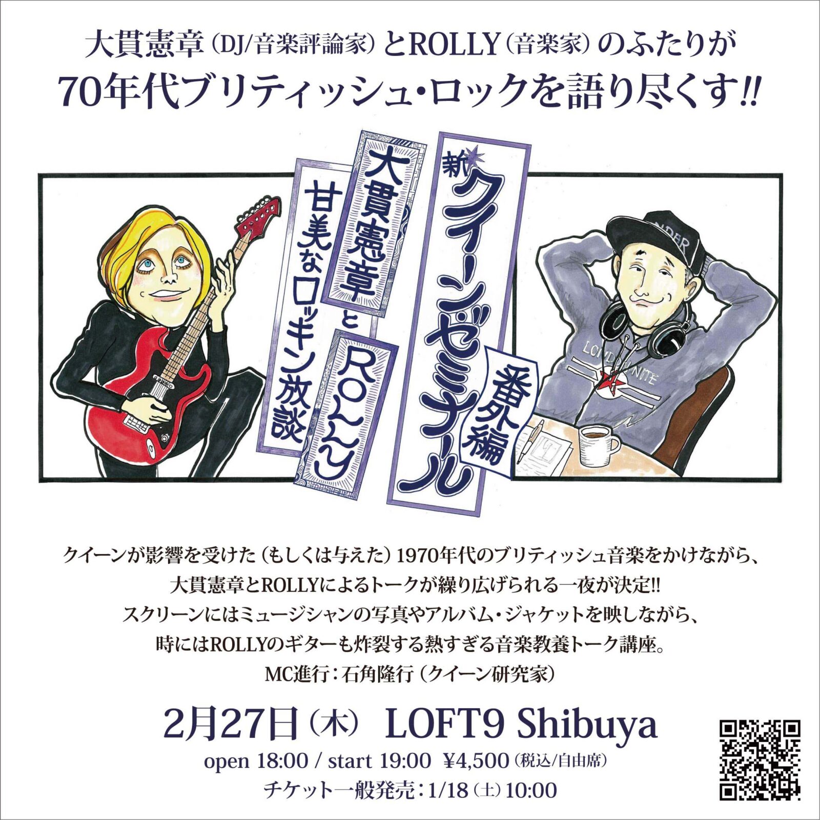 大貫憲章(DJ/音楽評論家)とROLLY(音楽家)のふたりが(主に)70年代のブリティッシュ・ロックを語るトークイベント「大貫憲章と