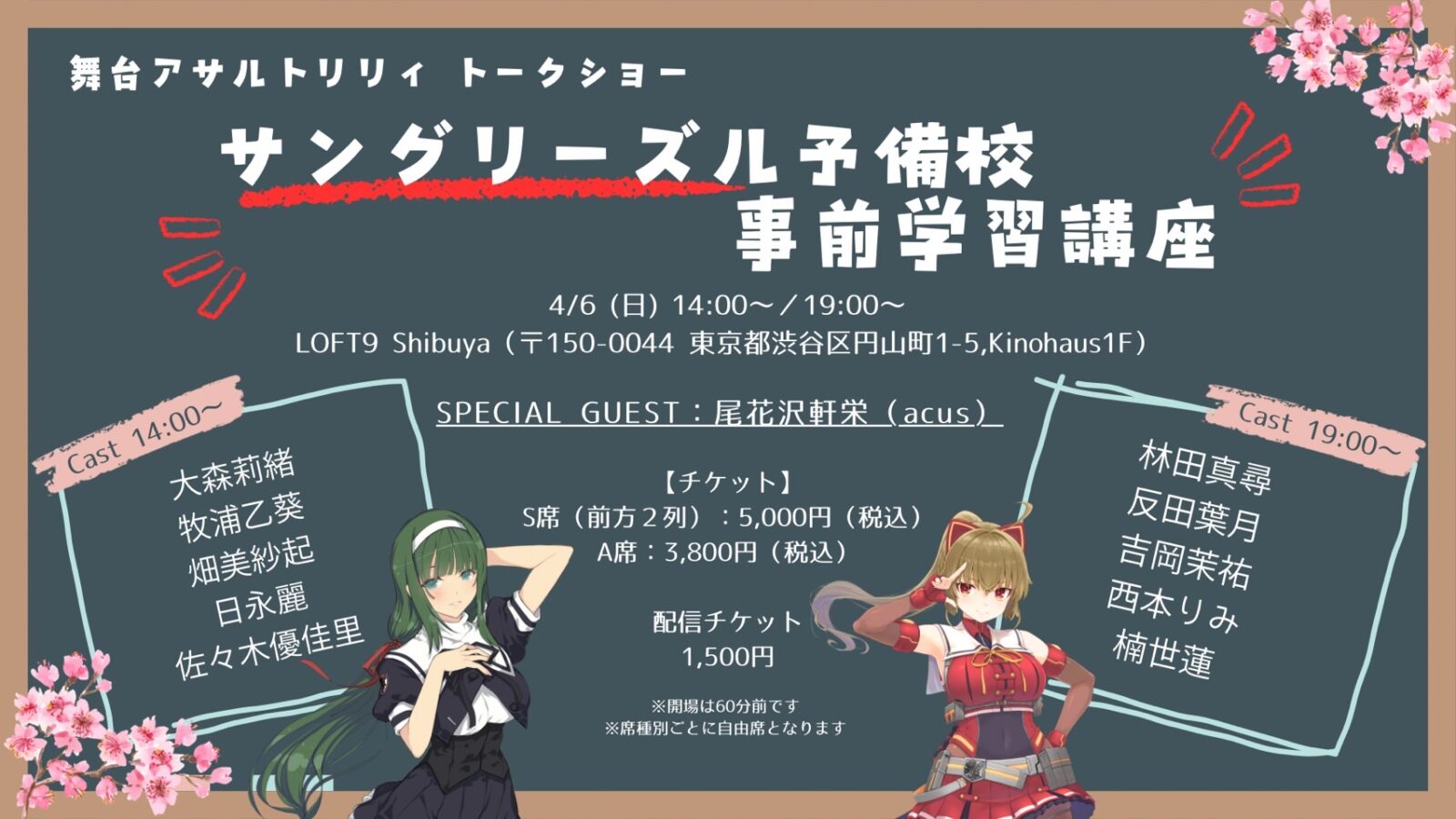 A席¥3,800(※飲食代別/要1ドリンク)