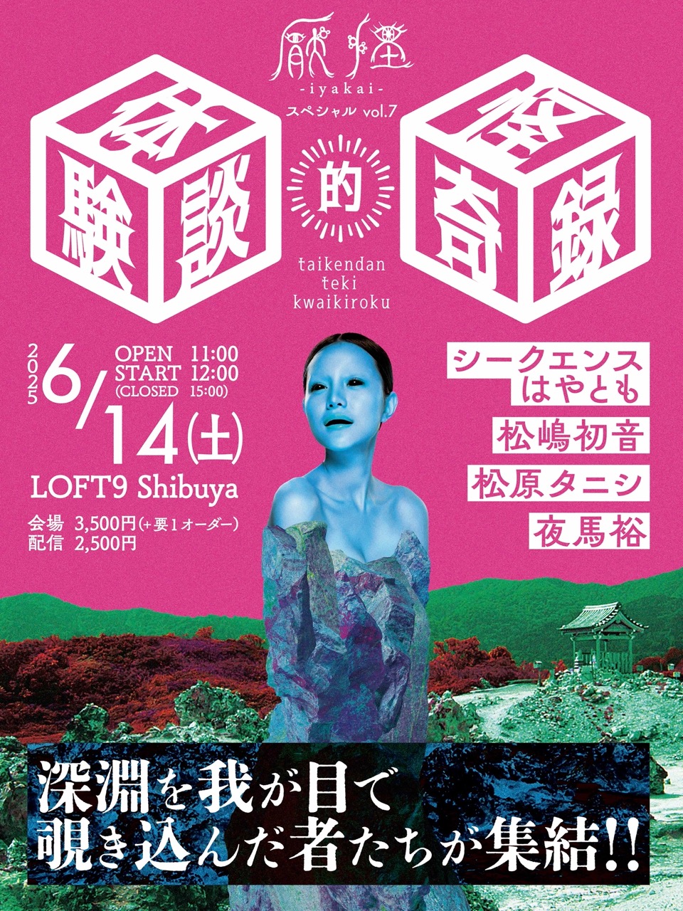 ゲストは、鋭い霊感を持つ「シークエンスはやとも」さんと「松嶋初音」さん、そして事故物件に住み続ける「松原タニシ」さん。そしてホストは、厭な話とヤバい取材が大好物の怪談師・夜馬裕。