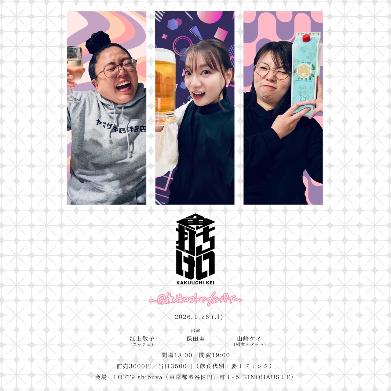 - 会場チケット前売 ¥3,000 / 当日 ¥3,500(飲食代別・要1ドリンク)
