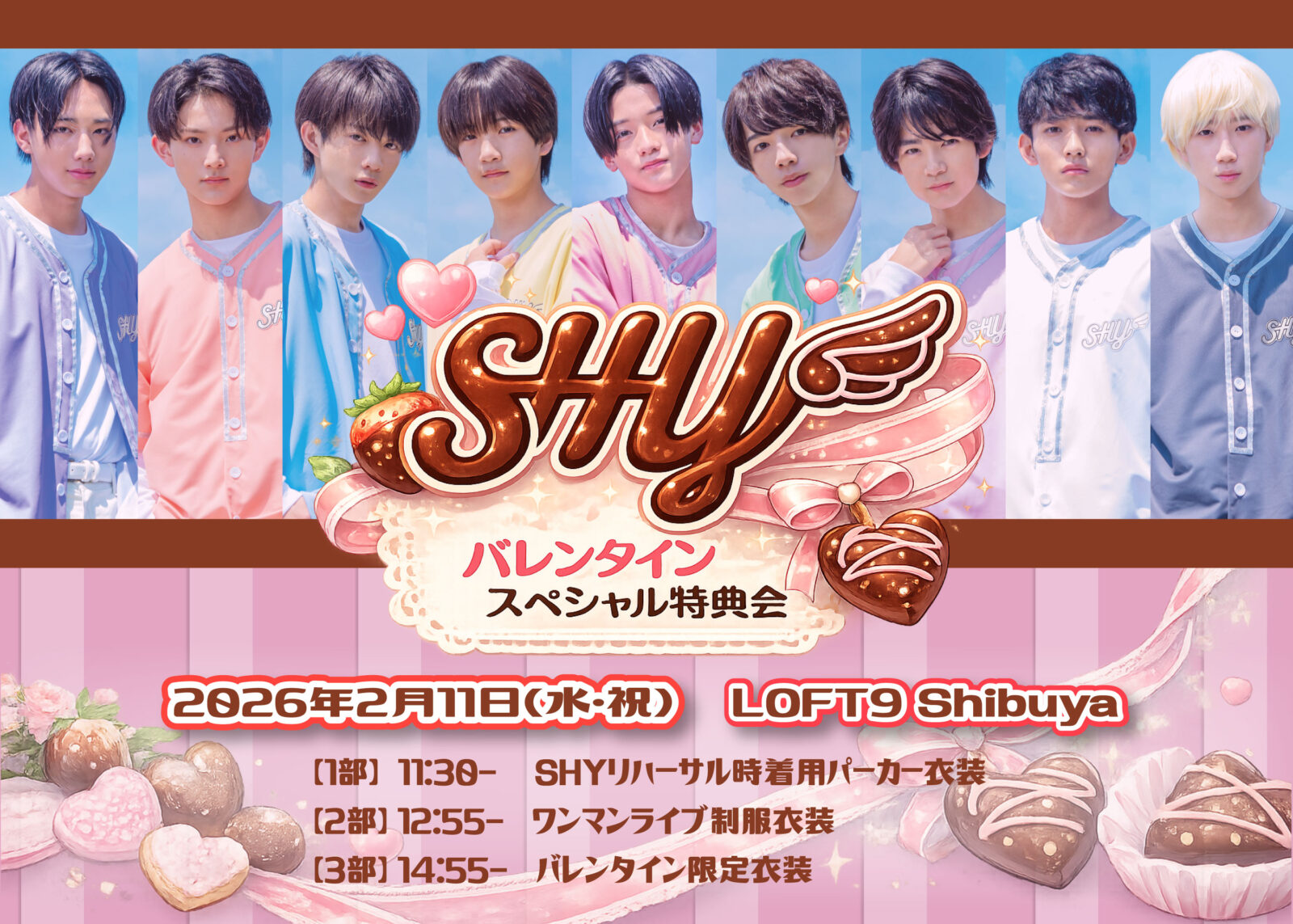 SCHEDULE 2026 02 11 Wednesday バレンタイン スペシャル特典会&TikTokキャンペーンご褒美特典会 Tweet 詳細はこちら! ※フラワースタンドの設置はできません。お花をお贈り頂く場合は卓上サイズのアレンジメントをご利用ください。 Share