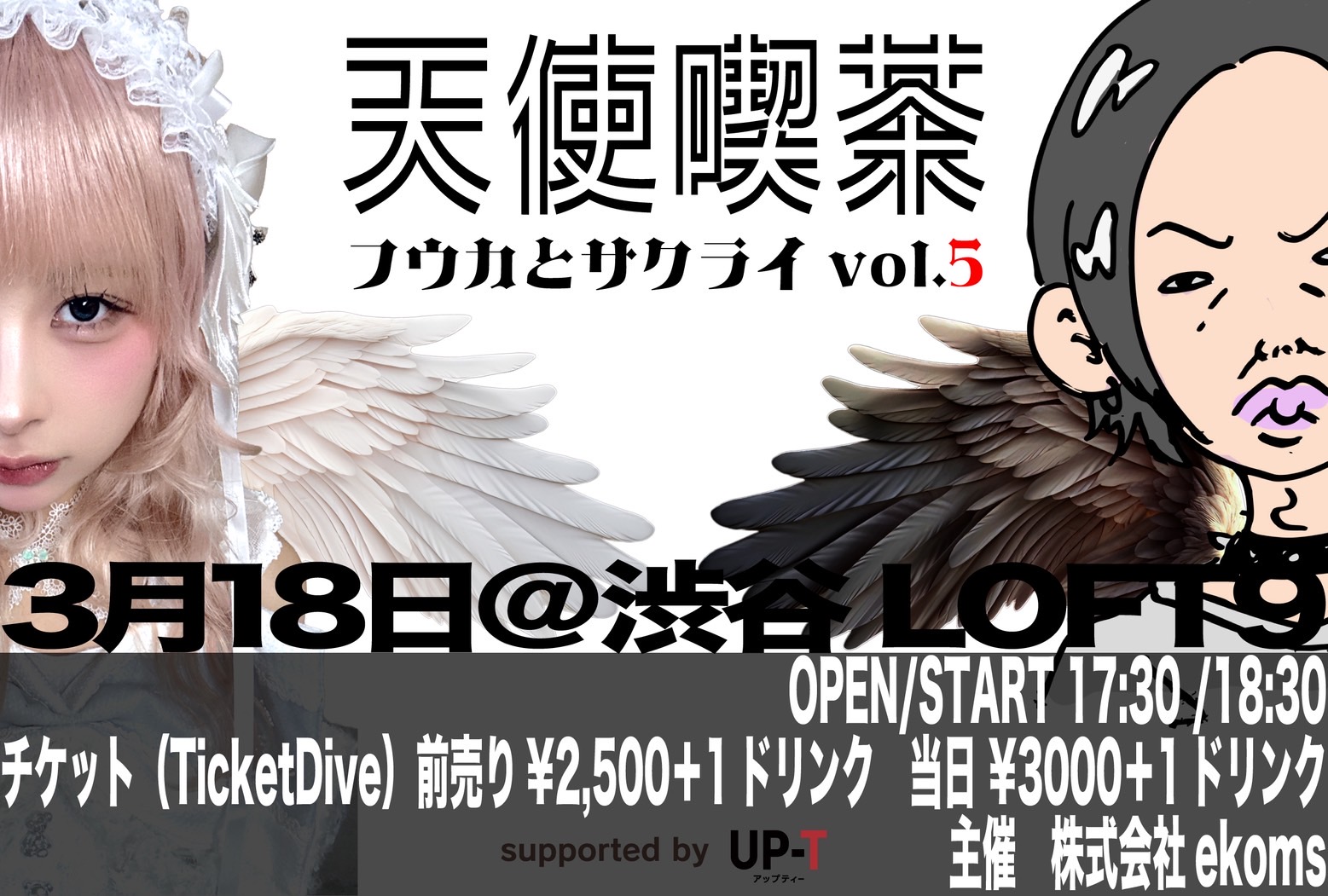 SCHEDULE 2026 03 18 Wednesday 天使喫茶「フウカとサクライ」vol.5 OPEN 17:30 - START 18:30 Tweet 【出演】楓フウカ(クマリデパート)/ サクライケンタ TICKET前売 ¥2,500 / 当日 ¥3,000 (飲食代別・要1ドリンク) チケットの詳細はこちらから #楓フウカ#サクライケンタ ※フラワースタンドの設置はできません。お花をお贈り頂く場合は卓上サイズのアレンジメントをご利用ください。 Share