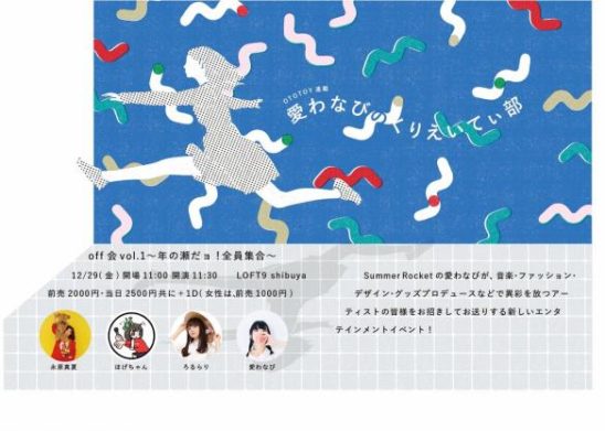 Summer Rocketの愛わなびが、音楽・ファッション・デザイン・グッズプロデュースなどで異彩を放つアーティストの皆様をお招きしてお送りする新しいエンタテインメントイベント!