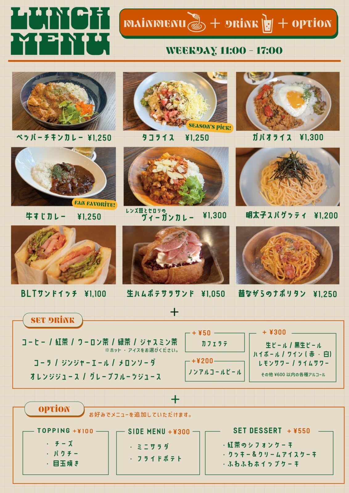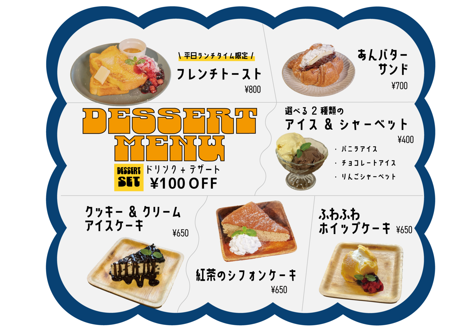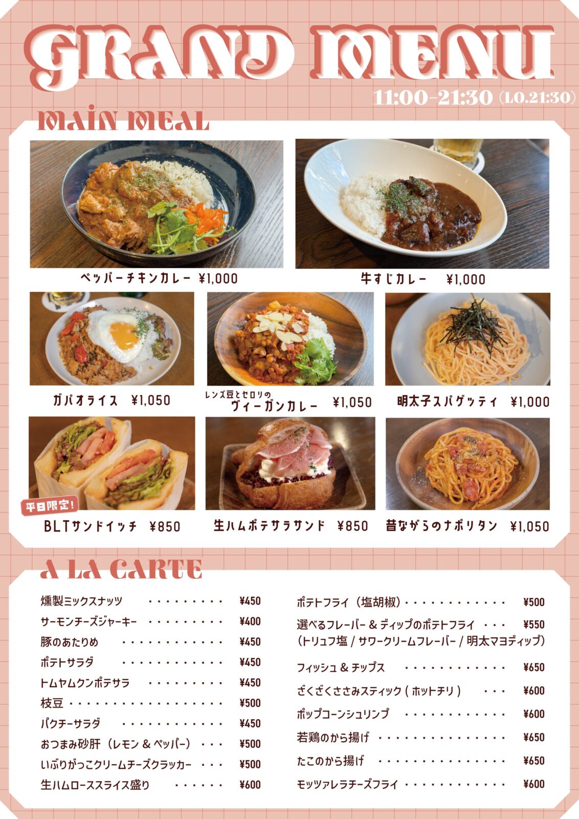 こだわりのカレーやサンドイッチ、デザートなどのお食事メニューもございますので、