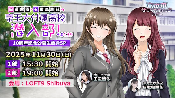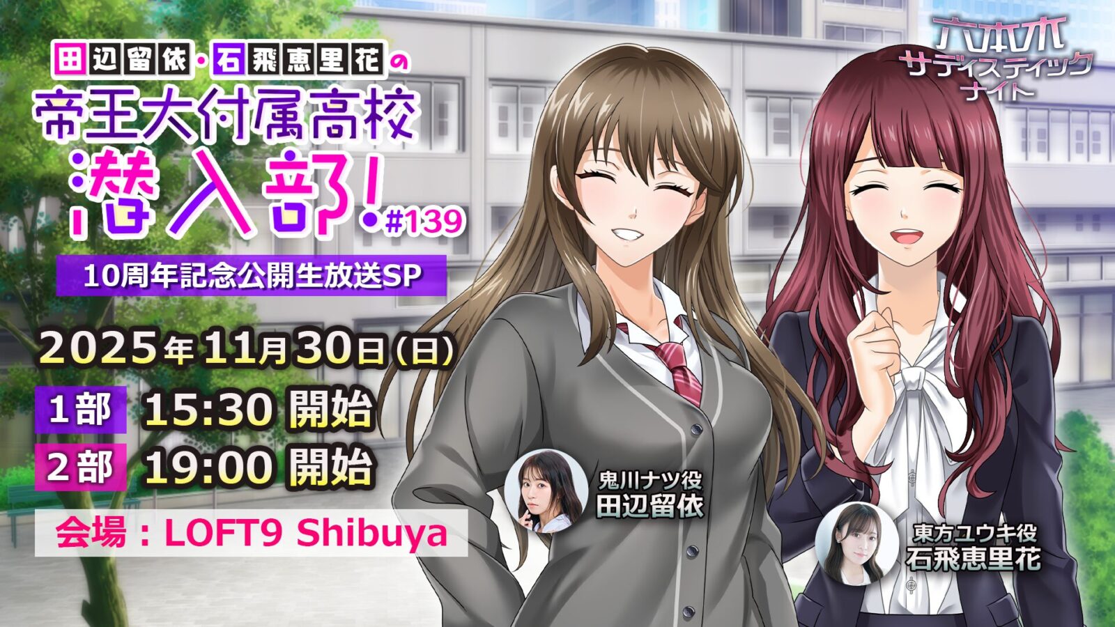 【2部】田辺留依・石飛恵里花の帝王大付属高校 潜入部!10周年記念公開生放送SP
