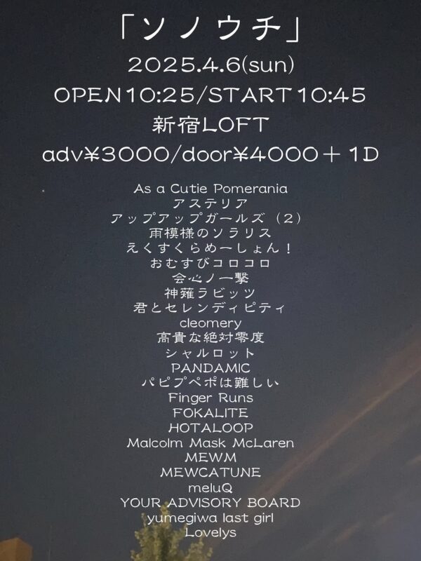 ADV¥4500 / DOOR 未定(DRINK代別¥600)