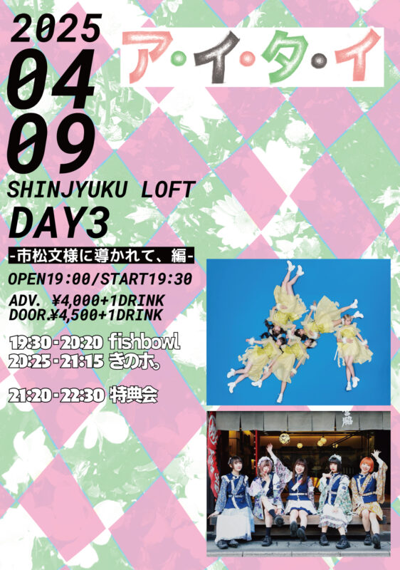 ADV:早割¥3000・通常¥3500 / DOOR¥4000(DRINK代別¥600)