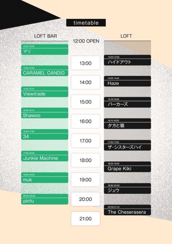 ※出演者のキャンセル、開場開演、TIMETABLEの変更による払い戻しはいたしません