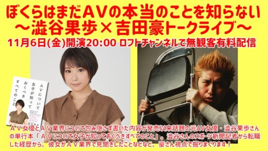 その内容はAV志望者やAVファンのみならず広い読者層からSNSで絶賛されており、そんな一人がプロインタビュアーの吉田豪さん。澁谷さんのスポーツ新聞記者から転職してAV女優へといった経歴から、彼女がAV業界で見聞きしたことなどなど、豪さん視点で掘りまくります!