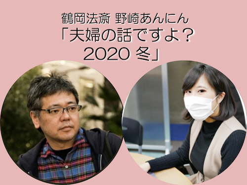 ポピュラリティーのないもの同士が結婚したもので自分たちのおかしさ面白さを伝えようにもどうしたものかわからない。そこで今回は「聞き手」をゲストに、いままで一番わかりやすい鶴岡と野崎を目標にやっていきます。内容の大半はエロ業界のことと両者納得のもとおかしなことをする夫婦の話です。