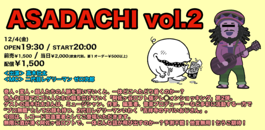 前売¥1,500 / 当日¥2,000(飲食代別。要1オーダー¥500以上)
