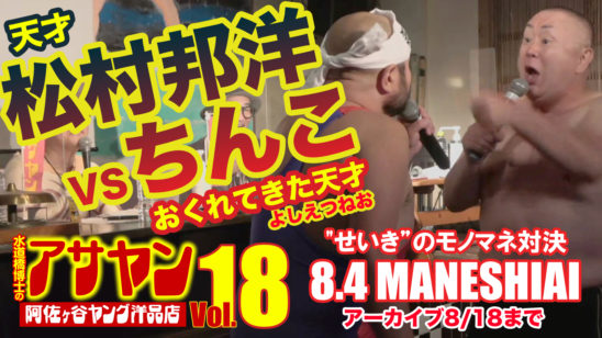 ![アサヤンVol.18 [ 8.4 MANESHISAI ] 天才・松村邦洋vs遅れてきた天才・よしえつねお](https://www.loft-prj.co.jp/schedule/wp-content/uploads/2021/08/MANESHIAIs1tw-120x68.jpg)