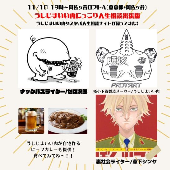 うしじまいい肉ゲスヤバ人生相談ナイト11月もやります♪