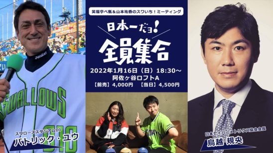 また、スワローズナインを常に近くで見守り続けたスワローズスタジアムDJのパトリック・ユウさんに今年のスワローズを語っていただく。