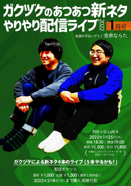 ガクヅケのあつあつ新ネタやりやり配信ライブ、かなりのあつさが予想されます。決して手で触らずに、しっかりと目で見て楽しんでくださいね!あつあつの新ネタを、やり!やりやりの、あつ!お笑いなんでもあり!ありありの、あつあつの新ネタを、ガツでお届け!あつあつあつあつあつ!あつい!!!あつすぎた!あつすぎたかもしれません!こんなにあついと、なんでも、やり!やりやりで、ガツ!ガツで、お願いします。