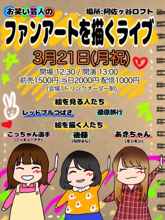 世界初、 お笑い芸人がお笑い芸人のファンアートを描くライブです。