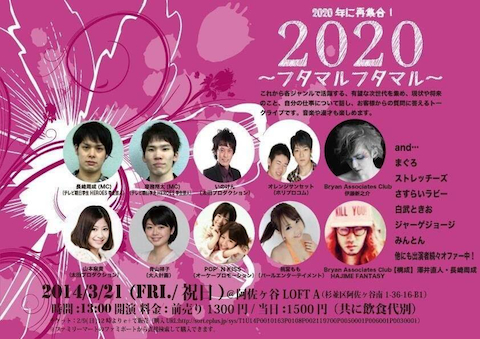 - 前売¥1,300 / 当日¥1,500 (共に飲食代別)