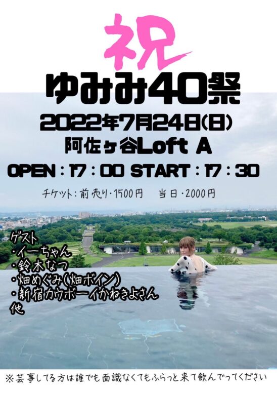 - 前売 ¥1,500 / 当日 ¥2,000(要別途飲食代)