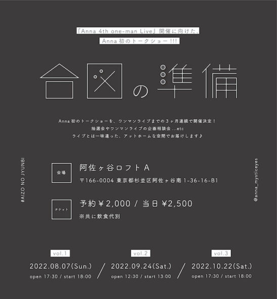 Anna初のトークショーを、ワンマンライブまでの3ヶ月連続で開催決定!