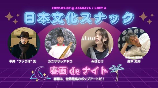 「日本文化が好き」ということ以外縁もゆかりもない4人による”日本文化スナック”、しかもテーマは「春画」。いったいどうなっちゃうんだろう?(心の声)