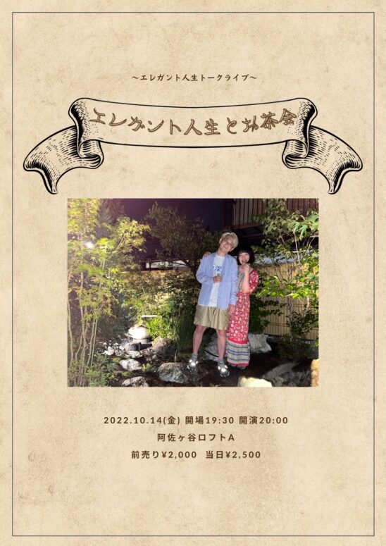 エレガント人生が近況報告をしたり、今後について話したりするライブです。