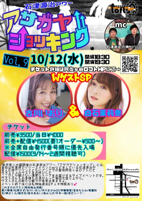 第9回は、2回目の登場11月に10周年を迎える年内で引退予定の古川いおりさんと、芸能人 白石茉莉奈でデビュー後TV映画音楽ラジオ数々の活動中の白石茉莉奈さんの、超豪華ゲストでお送りします。