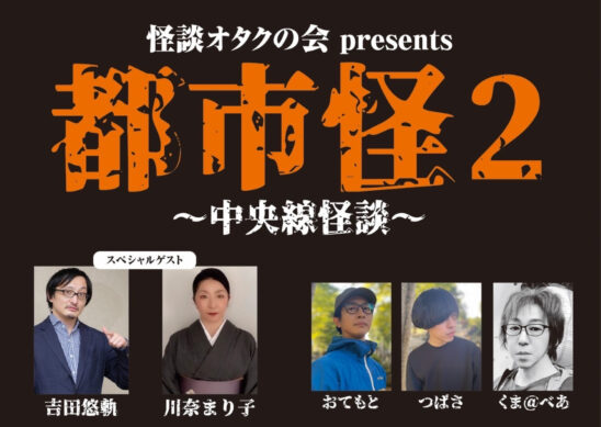 今回の都市怪はそのいくつかにスポットを当てて行こうと思う…ナビゲートは怪談オタクの会のおてもと、くま@べあ、つばさの三人に加えオカルト研究家で『新宿怪談』他ルポ怪談の名手・吉田 悠軌氏、怪談作家で『八王子怪談』の作者・川奈まり子氏の強力なお二人を迎えて開演いたします!