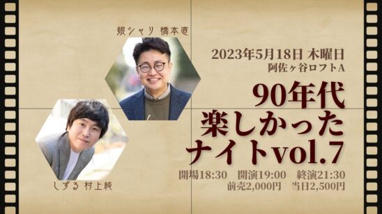 90年代に熱中した同世代で集まり、音楽、ドラマなど様々なカルチャーのことを当時を振り返りながらただただお喋りします!!