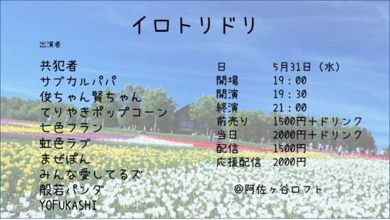 自分たちの「色」がはっきり出てる芸人たちが自分の色を出し尽くすライブです!