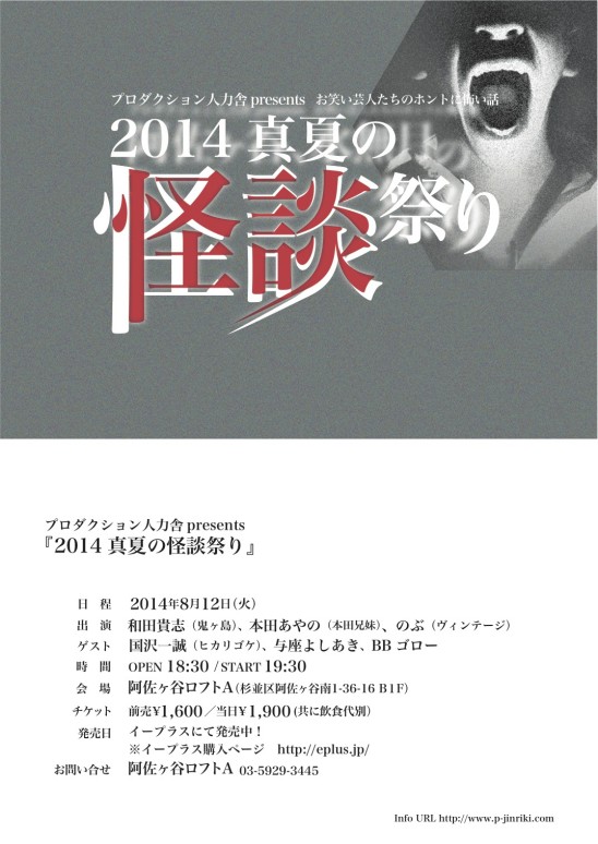 鬼ヶ島和田くんを中心としたお笑い芸人によるホントに怖い話をするイベントが1年振りの開催決定!