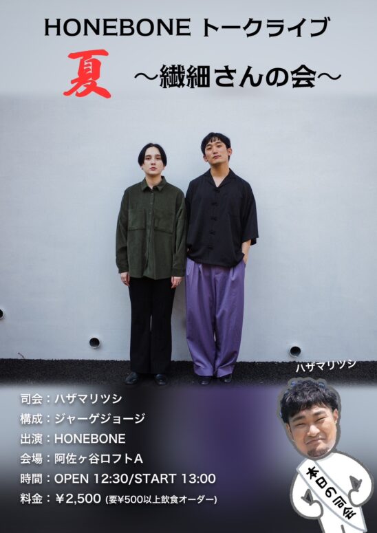 毎回好評のHONEBONEトークライブ!今回も会場観覧のみ!!