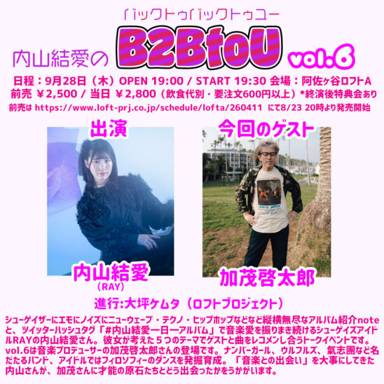 彼女が考えた5つのテーマでゲストと曲をレコメンし合うトークイベントです。