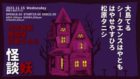 怪談ファンにも堪らない豪華怪談師の皆さんを迎えし、たっぷりと心身ともに凍える恐怖の夜をお届けします